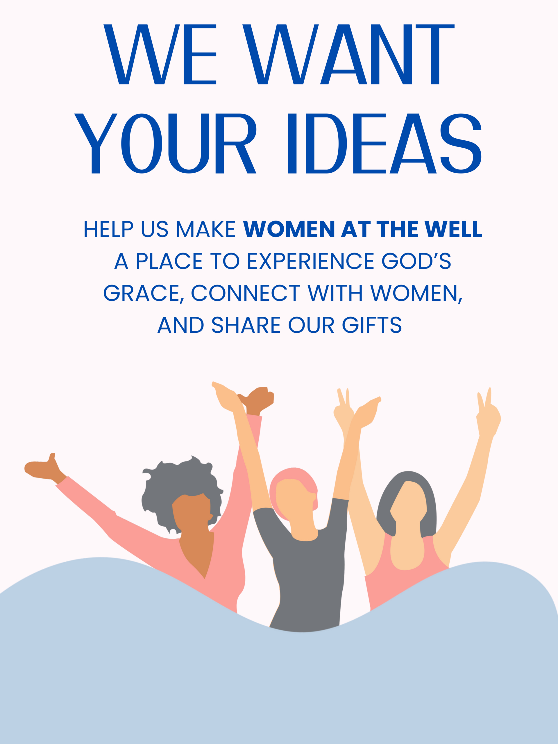 Ladies, do you have any ideas for Women’s Ministry Events that would help connect you to Jesus and other women? Maybe you’ve attended events in the past or have heard about something another congregation has done that you’d like us to try.